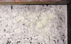 遠赤外線が食材の芯まで浸透し、余分な油やアクが噴き出します。水槽に噴き出した油は冷えるとチーズのように真っ白に固まりました。これほど多くの脂肪分を摂取していたかがわかります。