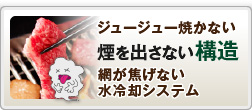水冷却ヘルシーアミの中には水が入っていて高温にならないからです。水冷客されることで低温を維持し、アミにくっ付かないので焦がさず美味しく焼く事ができます。